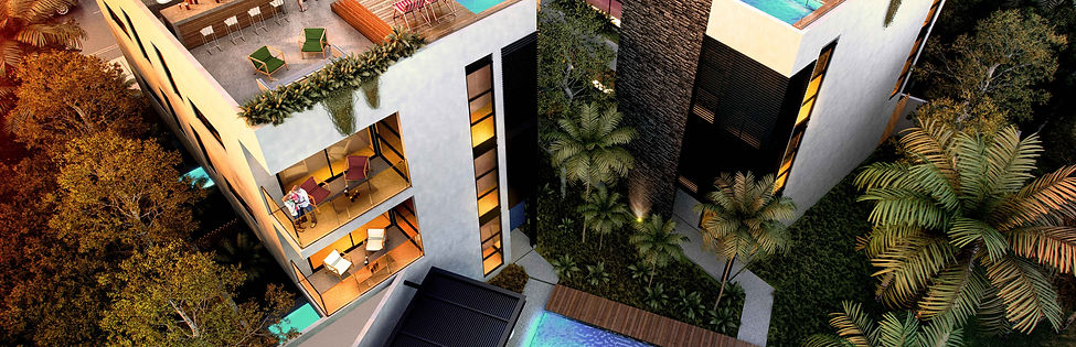 PARKE LANE is surrounded by the jungle that characterizes the Riviera Maya. The condominium consists of two buildings with similar distribution, each with two studios on the ground floor with private jacuzzi and garden, a 2-bedroom apartment on the first floor and a 3-bedroom penthouse with private terrace and pool. With only 8 boutique apartments, PARK LANE offers quiet, privacy, luxury finishes, swimming pool, chill-out, barbecue and garden.